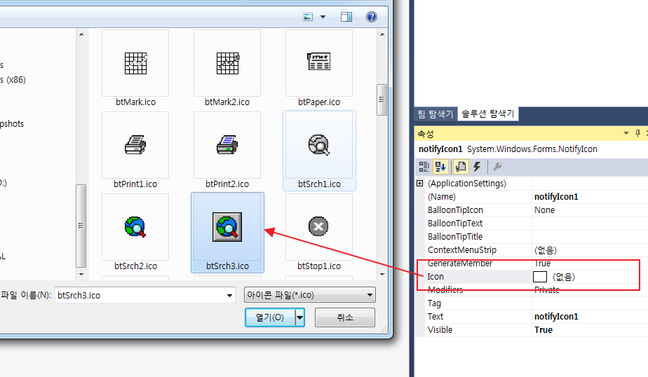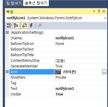 보여줄 아이콘이 지정되어 있지 않으면 notifyIcon 을 등록해도 소용이 없으므로, 적당한 아이콘을 찾아 지정해 준다.