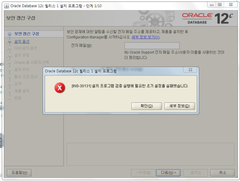 Oracle 12c server 설치하다가 INS-30131 에러를 만났을 때