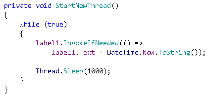 Control.Invoke를 호출하는 위 코드를 Action 대리자와 확장 메서드를 사용하여 필드에서 사용할 만한 라이브러리로 만들어 봅시다.