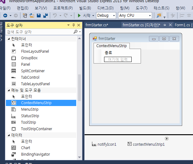 그리고, ContextMenuStip 를 하나 추가해 준다.